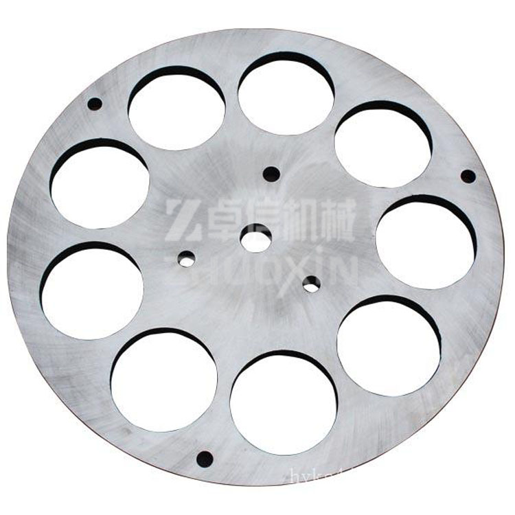 產(chǎn)品簡介:噴漿機鋼襯板作為噴漿機的易損件,所以使用是相當廣泛的,每個噴漿機上都配有兩塊鋼襯板,和橡膠板一樣,兩個配套使用的,在圓形襯板外圈的孔為料孔,內(nèi)圈的孔為風孔,各風孔邊緣之間到各料孔邊緣之間的距離均不大于10毫米。