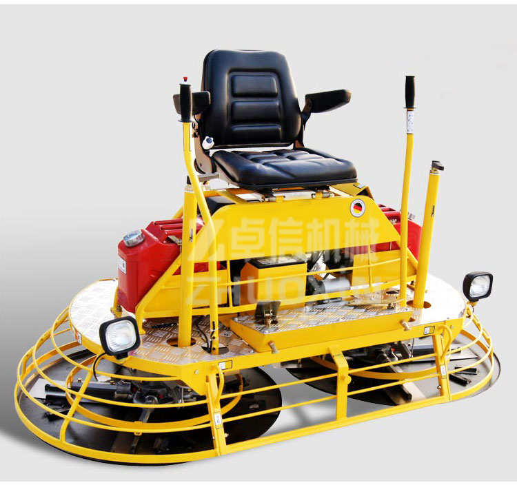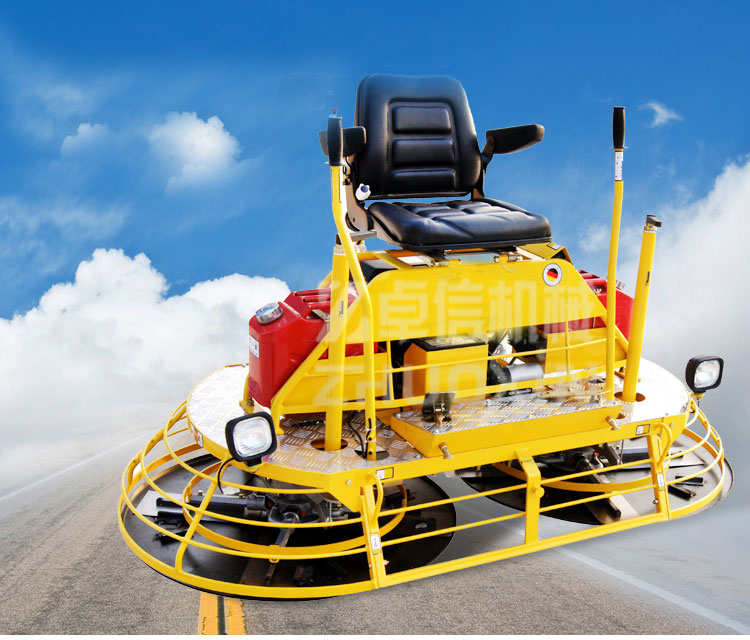 - 座駕式抹光機用于混凝土地面的提漿、壓實、抹平、抹光。相對于手扶式抹光機,效率極高。zmjt038座駕式抹光機具有以下特點1.駕駛型操作,大大減輕了勞動強度,提高工作效率。2.雙刀盤,對地面有更好的壓實效果。3.機械式轉(zhuǎn)向操作系統(tǒng),反應(yīng)靈敏,操作輕松、舒適。4.可同時安裝兩只抹盤,進行快速提漿。5.裝備大馬力點啟動發(fā)動機,提供強勁可靠的動力。6.控制螺桿可調(diào)整葉片角度。7.抹光刀支撐臂,選用經(jīng)嚴(yán)格熱處理的超大直徑碳結(jié)構(gòu)鋼,可適應(yīng)個別工人的野蠻操作。座駕式抹光機技術(shù)參數(shù)型號 FMZ-S36工作 功率 24hp/3600rpm操作方式 駕駛式油箱容積 20L工作寬度 75in.潤滑油量 1.8L工作速度 0-135rpm燃油消耗量 313g/kWh抹刀數(shù)量 8總長 1940mm抹刀尺寸 350x150mm總寬 990mm固定孔距 4.75 in總高 1050mm發(fā)動機 包裝尺寸 1950x1010x1070mm型號 HONDA,GX670類型 汽油機,空冷4沖程,OHV,雙缸工作重量 300kg★駕駛式操作,大大降低了勞動強度,提高了工作效益,施工效率是普通抹光機的5-8倍。單人操作,降低施工成本。★雙刀盤工作,重量更大,對地面具有更好的壓實效果,大大提高了路面的密實度。施工功效比手扶式抹光機更高★可同時安裝兩張?zhí)釢{圓盤,進行快速提漿。★機械式轉(zhuǎn)向操作系統(tǒng),反應(yīng)靈敏,控制輕松自如,操作靈活舒適。★裝備世界知名品牌本田GX690 汽油大馬力電起動發(fā)動機,提供強勁可靠的動力。★腳踏式安全切斷開關(guān),可迅速關(guān)閉發(fā)動機,提供最大的安全保障。★腳踏油門控制,反應(yīng)靈敏,提速快捷.★汽油發(fā)動機中置設(shè)計和雙聯(lián)軸器,使整機具有良好的工作性能。★配備了14升水箱、油箱可供較長時間連續(xù)作業(yè).★噴水與前后照明裝置,對施工更有幫助。★用于水泥混凝土表面的提漿、抹平,抹光。廣泛應(yīng)用于高標(biāo)準(zhǔn)公路、倉庫,場地等水泥混凝土路面及地坪的施工。★可選裝行走裝置,工地移動更方便。座駕抹光機操 作 控 制 要 領(lǐng)操作員就位后,左腳踩下熄火踏板后右腳稍踩油門控制板。啟動發(fā)動機,雙手握操縱桿稍作低速運轉(zhuǎn)(怠速)后加大油門,進行正常作業(yè)。操縱桿向前推,機器向前走,向后拉機器向后退。右手拉同時左手推,機器順時針轉(zhuǎn)。左手拉同時右手推,機器逆時針轉(zhuǎn)。雙手將操縱桿向右移,機器右行。雙手將操縱桿向左移,機器左行。松開右腳踏板,機器怠速,刀片停止旋轉(zhuǎn)。松開左腳,機器熄火。關(guān)閉發(fā)動機電門,結(jié)束操作。裝備國際名牌汽油機,名牌品質(zhì)保證,性能優(yōu)越,啟動容易;變速箱大模數(shù)設(shè)計,鋁合金箱體,免維護,使用壽命長;抹光刀支撐臂,選用經(jīng)嚴(yán)格熱處理的超大直徑碳結(jié)構(gòu)鋼,可適應(yīng)個別工人的野蠻操作;科學(xué)設(shè)計的離心式離合傳動機構(gòu),傳動扭矩大,使用壽命長,維護很方便;低重心設(shè)計,使機器運行平穩(wěn),靈活;表面噴塑,漂亮美觀,防銹耐蝕。該產(chǎn)品已出口美國、法國、加拿大、印尼、俄羅斯、越南、澳大利亞、韓國、伊朗等多個國家,獲得客戶的一致好評。因產(chǎn)品生產(chǎn)批次、具體型號不同,以上圖片僅供參考,詳情可聯(lián)系我們的銷售人員進行具體核實。座駕式抹光機售后服務(wù)及交付說明1、座駕式抹光機性價比說明:同產(chǎn)品質(zhì)量條件下,我公司不以降低性能、更改產(chǎn)品零部件為代價,給出最低最實在的價格。(可根據(jù)客戶要求進行產(chǎn)品的生產(chǎn)配置)2、座駕式抹光機交貨說明:按供貨期交貨,若有特殊情況,需提前交貨的,我公司在有限的范圍內(nèi)將會組織人員加大生產(chǎn)力度、實行生產(chǎn),安裝,調(diào)試,包裝等工藝,力求滿足貴公司要求.3.座駕式抹光機售后服務(wù)范圍:產(chǎn)品保修期為1年,在保修期內(nèi)產(chǎn)品屬質(zhì)量問題的我公司給予最快捷的維修,無任何費用,在保修期外需要更換零部件的,我公司只收取成本.山東卓信機械(官網(wǎng)http://www.jnzhuoxin.com)秉承山東人的豪爽與實誠,誠邀各位專家、領(lǐng)導(dǎo)來我公司考察、指導(dǎo)、賜教并期盼與您真誠合作,“追求卓越”永遠(yuǎn)是我們的主題,我們將勵精圖治,再創(chuàng)高效,力爭以先進的技術(shù),優(yōu)良的產(chǎn)品質(zhì)量,為煤礦企業(yè)提供多方位的服務(wù)。