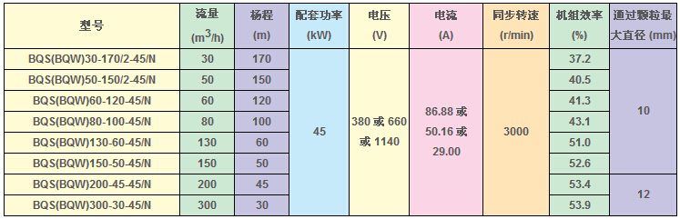 BQS(W)礦用隔爆型排污排沙潛水電泵技術(shù)參數(shù):