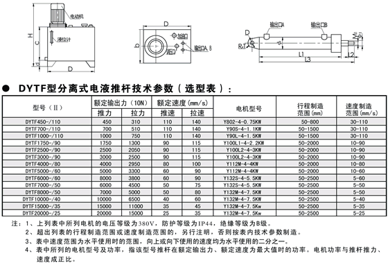 - DYTP型平行式電液推桿是一種集機、電、液為一體的液壓驅動機械手,適用于需要往復推拉直線(或往復旋轉一定角度)運動,也可用于需要上升、下降或夾緊工作物的場所,并可實現遠距離危險地區(qū)的集中或自動控制。已廣泛應用于冶金、礦山、電力、煤炭、機械、交通、糧食、化工、水泥、水利、建材、運輸等部門,是一種通用的動力源。DYTP型平行式電液推桿是一種機、電、液一體化的新型柔性傳動機構,它以執(zhí)行機構(油缸)、控制機構(液壓控制閥組)和動力源(油泵電機等到)組成。根據現場安裝空間及用戶使用情況電液推桿可有多種結構形式(具體見電液推桿外形尺寸圖,也可根據用戶要求定制樣式)。電動機通過正反轉驅動雙向液壓泵正反輸出壓力油,經液壓控制閥送至油缸,也實現活塞桿的往復運動。液壓控制閥組主要由溢流閥,吸油單向閥,調速閥(用戶要求),液控單向閥(液壓鎖)等組成也可根據電液推桿的工作特性,設計不同功能的油路組合閥,滿足其工作要求。一般有推出自鎖,拉回自鎖和推拉均自鎖;運行速度有可調速型,不可調速型;電液推桿工作角度有水平推,向上推(包括斜向上),向下推(包括斜向下)等幾種。電液推桿主要有以下優(yōu)點:(1)結構緊湊、安裝方便、占據空間小、維護簡單。(2)可帶負荷起動,具有過載保護功能。(3)回路設雙向液壓鎖,可停在規(guī)定行程范圍內的任意位置并自鎖,且保持輸出力不變。(4)推拉力,速度(用戶要求)無級可調,驅動力范圍極廣。(5)因故斷電,推桿自鎖,避免發(fā)生事故。(6)采用全液壓傳動,動作靈敏,運行平穩(wěn),能有效緩沖外來沖擊力,行程控制精確(≥0.5mm)(7)機電液一體化全封閉結構,工作油路循環(huán)于無壓的封閉鋼筒里,體積小,不滲油,在惡劣的工作環(huán)境下,不吸塵,不進水,內部不銹蝕,使用壽命長。DYTP型平行式電液推桿是我公司成立前針對國內中,大推力檔電動拉桿產品空白,而顧客又有需求的情況下于1988年起率先自主開發(fā)并獨家生產的系列產品,是我公司多種電動推拉桿系列產品之一。該產品已在首鋼,包鋼等多家大鋼鐵企業(yè)推廣應用,也可用于其他需要大推,拉力的場合。其使用條件為環(huán)境溫度-15℃-60℃,相對濕度≤85%。DYTP型平行式電液推桿驅動電機,減速器,滑動螺旋傳動機構等主要部分組成。內部設有彈簧緩沖機構及超載保護裝置,可保證產品安全,可靠地運行。DYTP型平行式電液推桿的性能參數,外形及安裝尺寸符合《Q/320211AKA01-2000電動推拉桿》企業(yè)標準的規(guī)定,其具體數據表列如下。