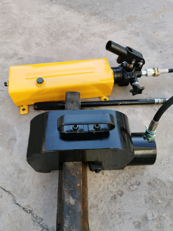 2、將液壓起道機側(cè)鉤橫向插入需要起道的位置,并將頂柱垂直于地面,將操縱桿插入撳手孔內(nèi),緩慢撳動操縱桿,使柱塞泵芯作往復(fù)運動,側(cè)鉤將帶動路軌向上運動達到起道目的,在被起路軌下墊上適當(dāng)?shù)哪緣K,緩慢打開回油閥,讓路軌下到木塊上,適度給機器頂柱或側(cè)鉤向下旋壓,讓機器復(fù)位,關(guān)閉回油閥,旋緊通氣閥,卸去起道機。